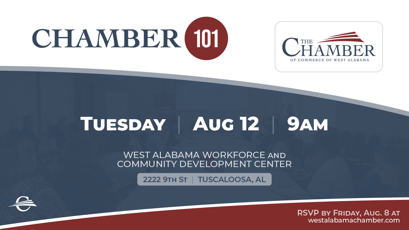Whether you’re a new, existing, or prospective member, Chamber 101 is designed to provide a 360-degree overview of The Chamber of Commerce of West Alabama's programs, tools, and resources so you can maximize your membership. As a member, you’re already linked to the hundreds of member companies working to shape the future of living and doing business in the West Alabama area. Take the next step and learn how you can engage, utilize your benefits, and make connections, as well as take advantage of additional opportunities for your business.