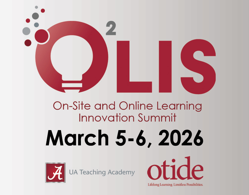 The University of Alabama Teaching Academy invites you to this year’s On-Site and Online Learning Innovation Summit, a gathering designed to celebrate and advance innovative teaching practices. For the first time, the summit expands beyond virtual teaching to include those who teach in person as well, creating a space where all educators can come together to share ideas and strategies. OLIS is now a two-day event!