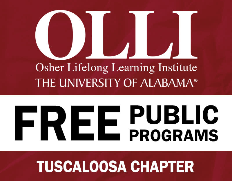 Have questions? Visit the OLLI website at olli.ua.edu or contact the OLLI office at 205-348-6482 or olli@ua.edu.