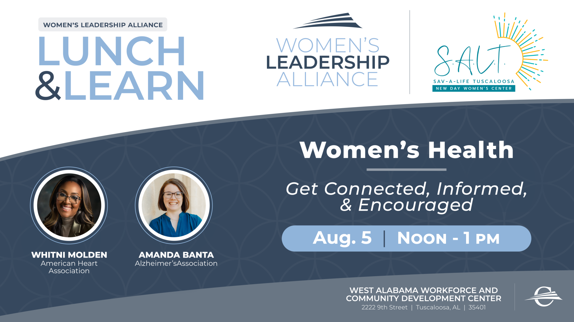 Civic-minded women in West Alabama can enhance their leadership skills, contribute to the community, and fulfill their personal and professional potential through the Women's Leadership Alliance. The group holds lunch-and-learn events quarterly, along with an annual celebration luncheon.
